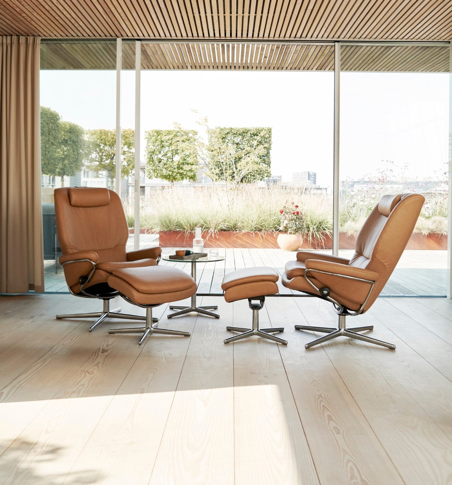 Stressless® Berlin has a retro look that has stood the test of time for decades, while the sleek outline gives it a modern touch. Beneath the timeless surface lie ultra-modern mechanical solutions and patents, which guarantee the feeling of true, exclusive Stressless seating comfort. Available with a high backrest with an adjustable neck pillow.