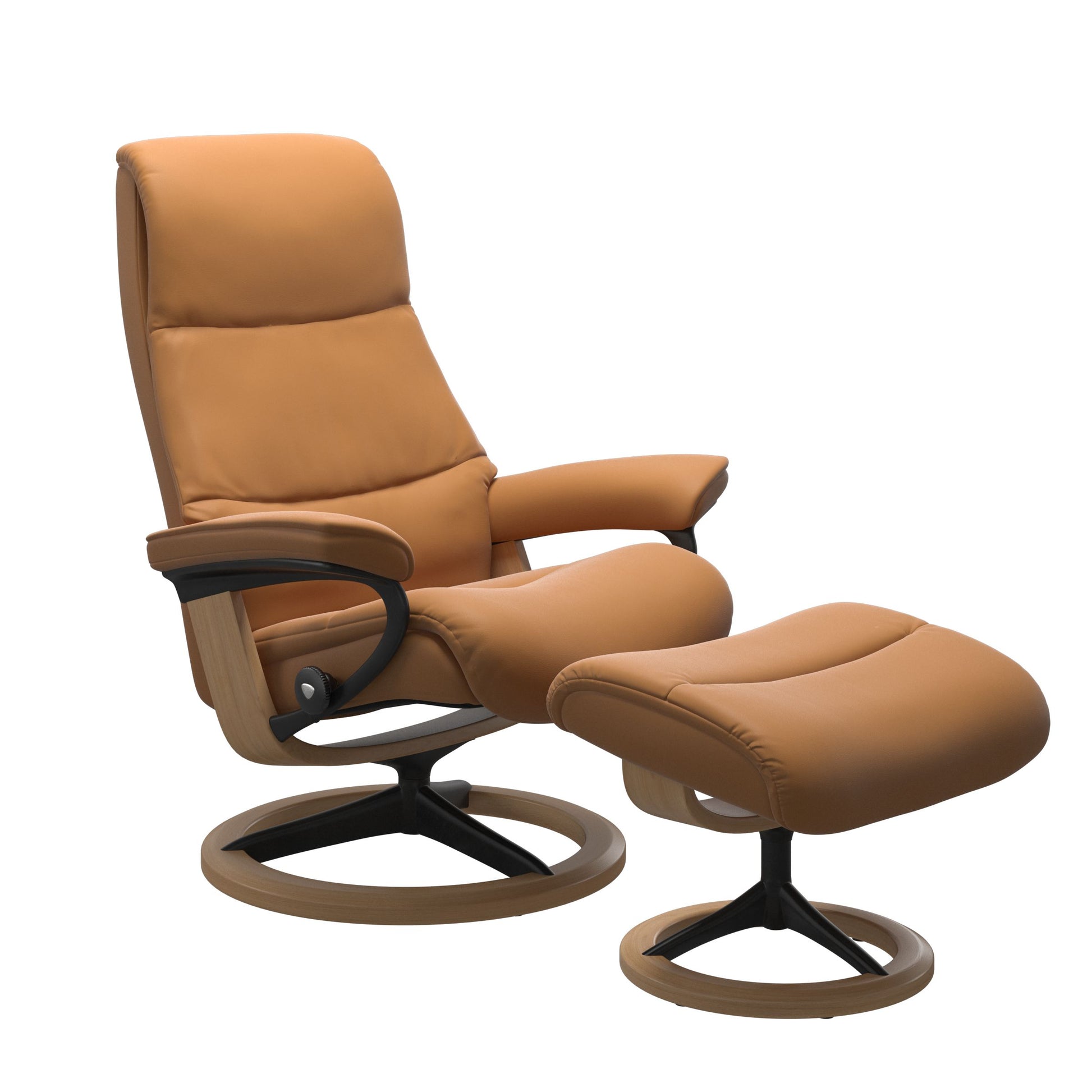 Zacht en tijdloos. De Stressless View is overvloedig gestoffeerd, maar behoudt toch een tijdloos en modern uiterlijk met slanke contouren. Hij is uitgevoerd met een verlengde, slankere rugleuning – ideaal voor mensen die een paar centimeter langer zijn. Hij heeft ook een elegante en comfortabele ondersteuning hoofdsteun die aanpasbaar is voor personen met afwijkende lengte.